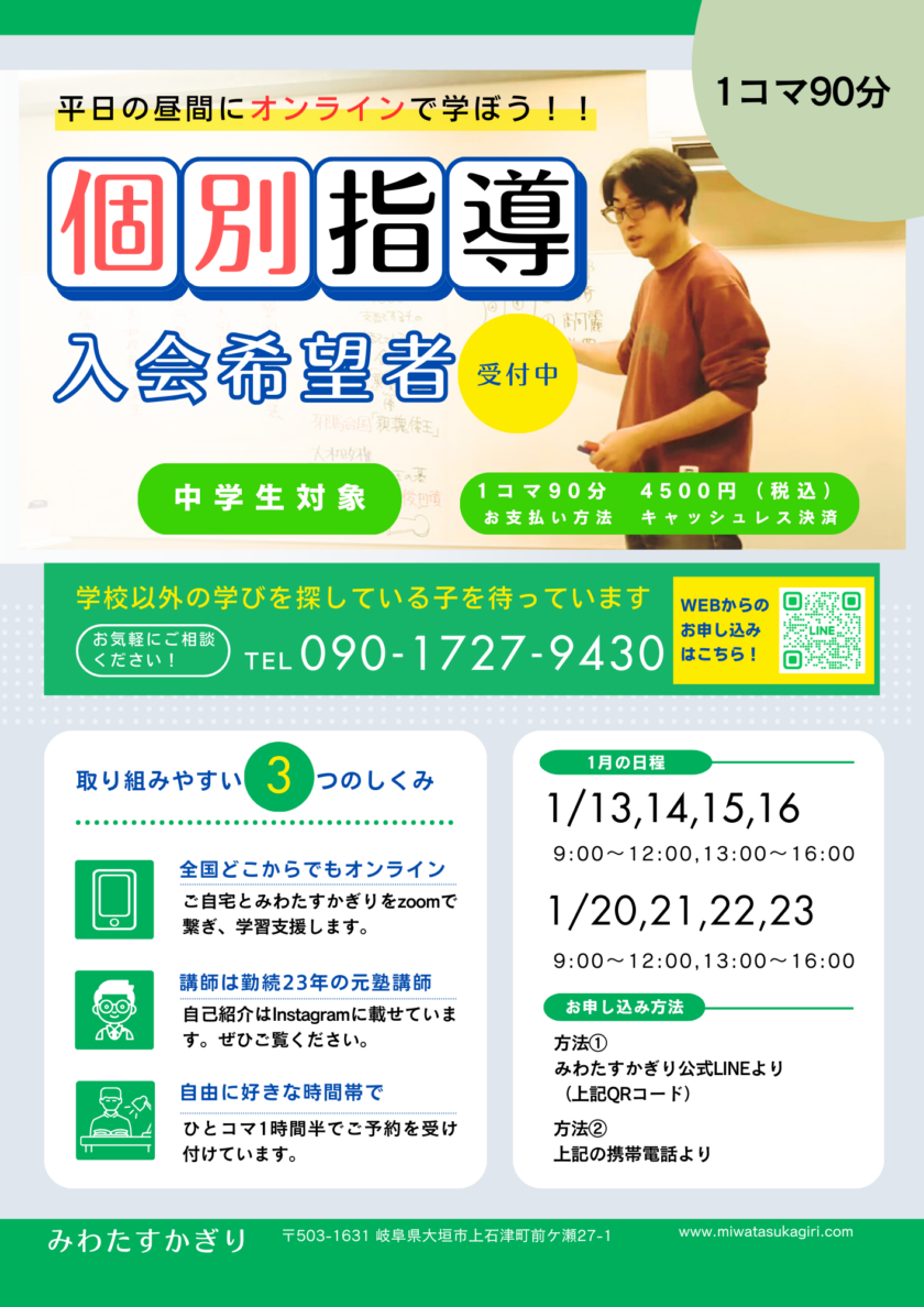 オンライン個別指導の開始!(全国の中学生対象)