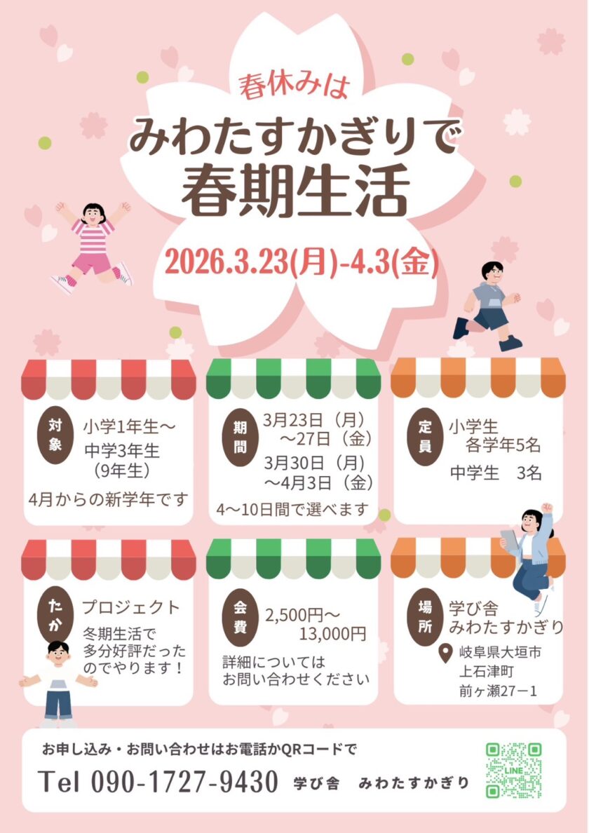 冬期生活で大好評だった 🔥新中1〜中3向け、たかプロジェクト活動も実施します!